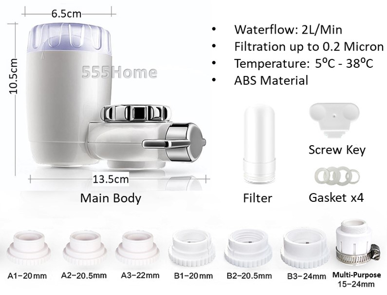 Water Filter Spray Faucet** Latest Design **-7 Layer Filter-Transparent Cover-Easy To Check Filter Condition -7 Layer Filtration-EXTEND FILTER LIFESPAN Turn filter knob only when necessary-Easily fix it up yourself with all the necessary fittings provided-Suitable for use in households-Fittings can be used on almost all types of water taps-Quality casing material - food grade ABS used ensuring safety and durability** Must Have For Every Kitchen Tap **Waterflow: 2L/MinFiltration up to 0.2 MicronTemperature: 5⁰C - 38⁰CABS Material